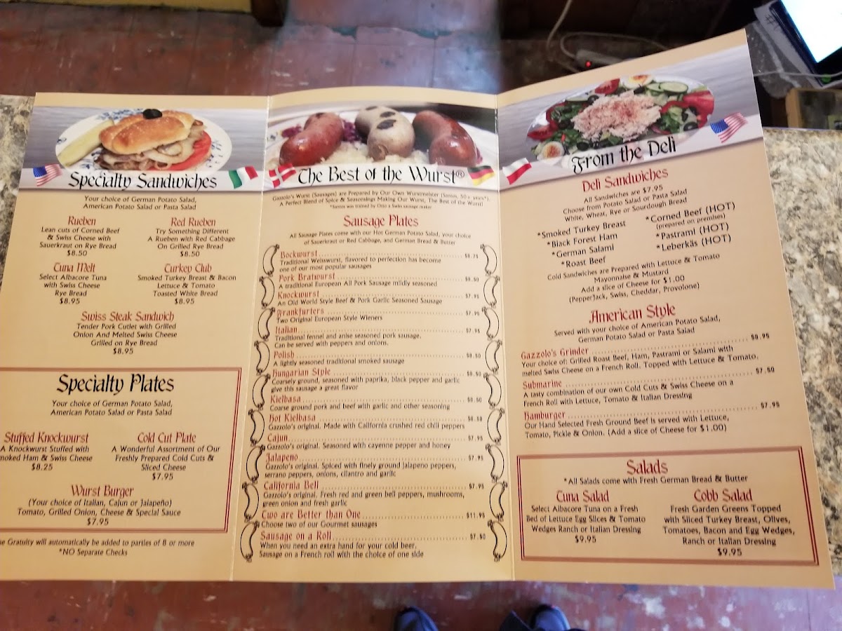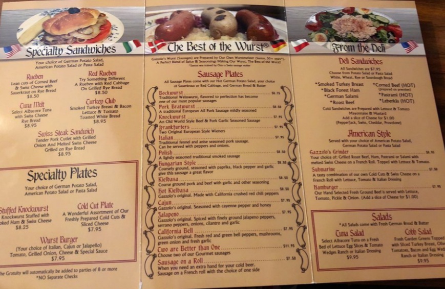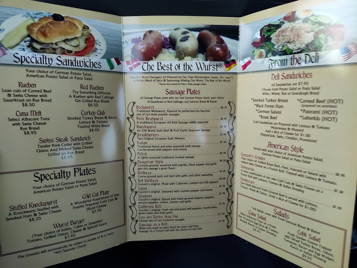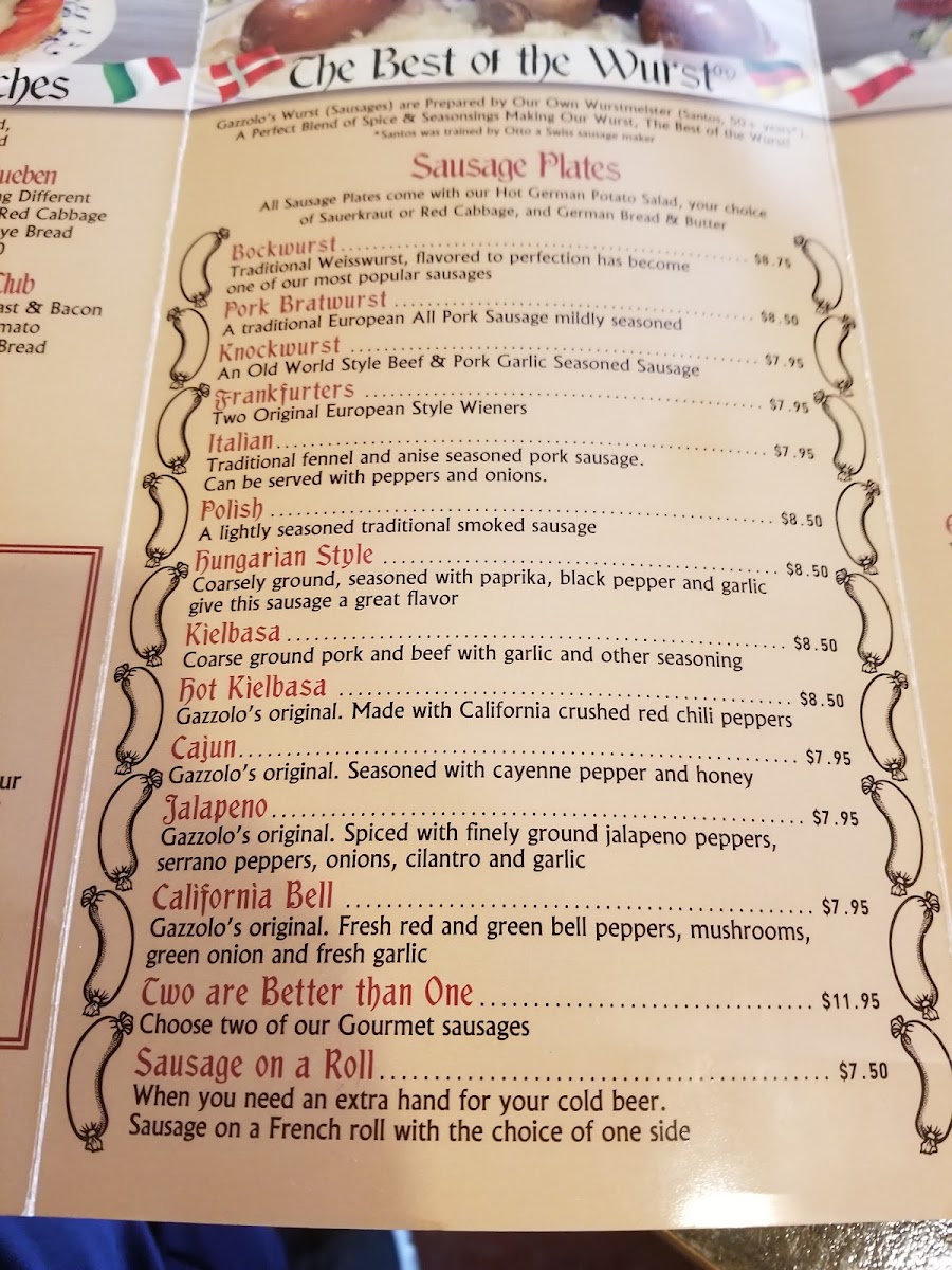 Gazzolo's Sausage Co Restaurant and Deli Menu